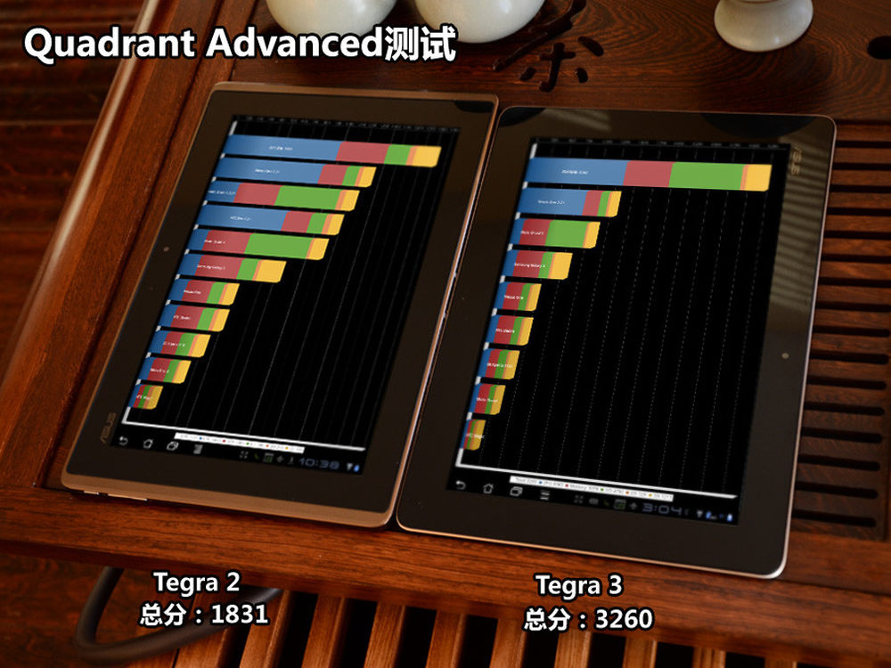 华硕Transformer Prime是首款搭载Tegra 3四核处理器的平板电脑,而华硕TF101则搭载了Tegra 2双核处理器,所以我们也拿来这两款平板对处理器的性能进行了详细的对比测试,下面就来一起看一下四核处理器到底比双核处理器强了多少。2/14