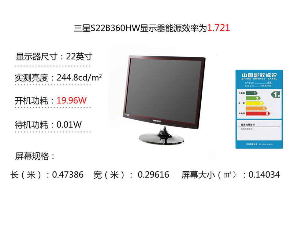 三星S22B360HW的能效已然达到了1级节能认证,相当节能低耗。12/12