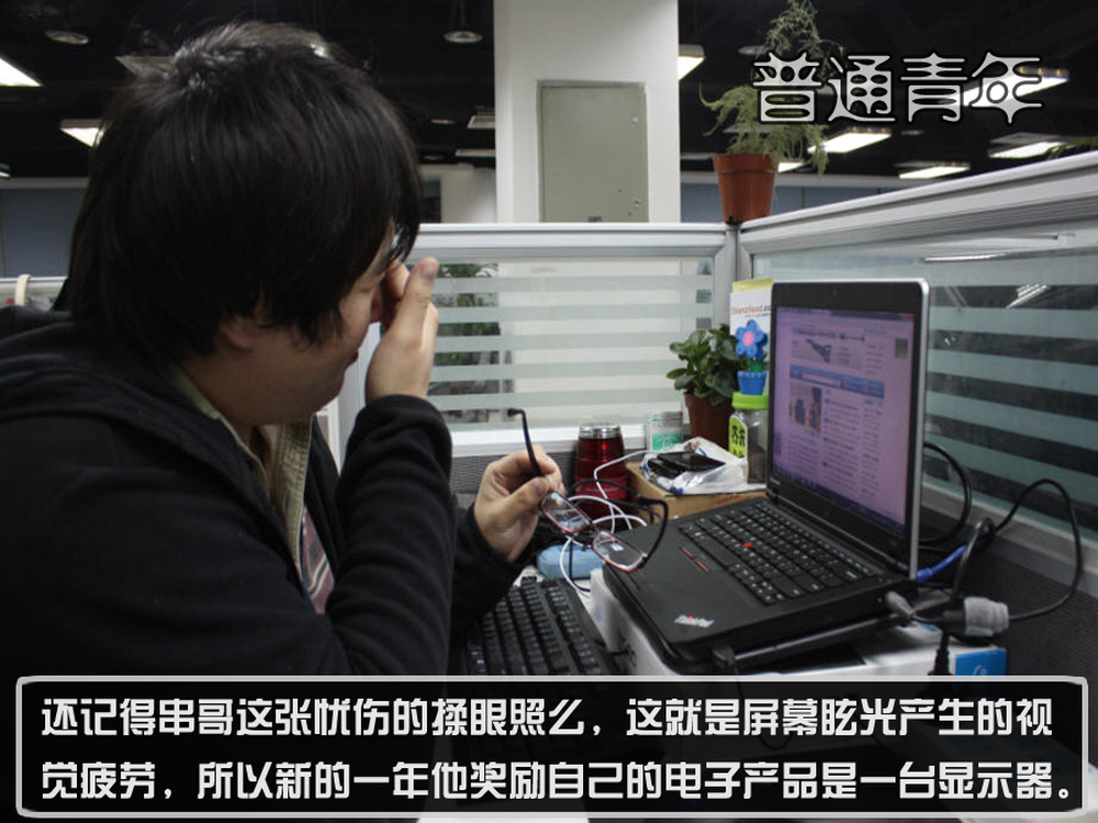 还记得串哥这张忧伤的揉眼照么?这就是屏幕眩光产生的视觉疲劳,所以新的一年他奖励自己的电子产品是一台显示器。3/18