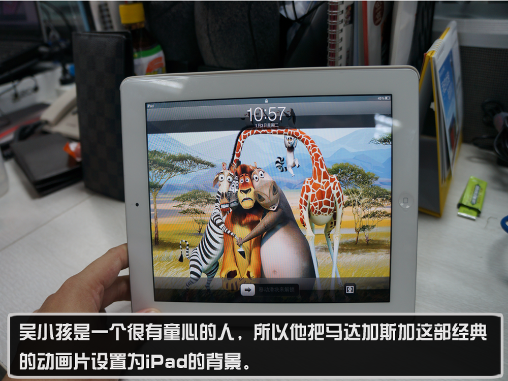 吴小孩是一个很有童心的人,所以他把马达加斯加这不经典的动画片场景设置成了iPad2的桌面。8/18