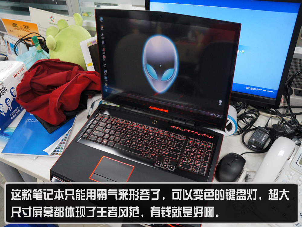 这款笔记本只能用霸气来形容了,可以变色的键盘灯,超大尺寸的屏幕都体现了王者风范,而最重要的是这款M18x是从在美国订购的,配件可以说都是顶级,有钱真是好啊。