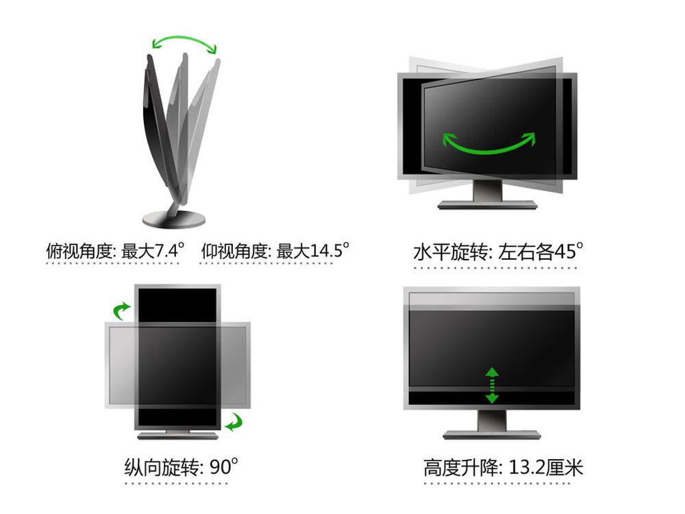 明基BL2400PT的俯仰角度相当大,实测数据远胜于之前测过的液晶。而且支持水平旋转,竖直升降和垂直显示。7/13
