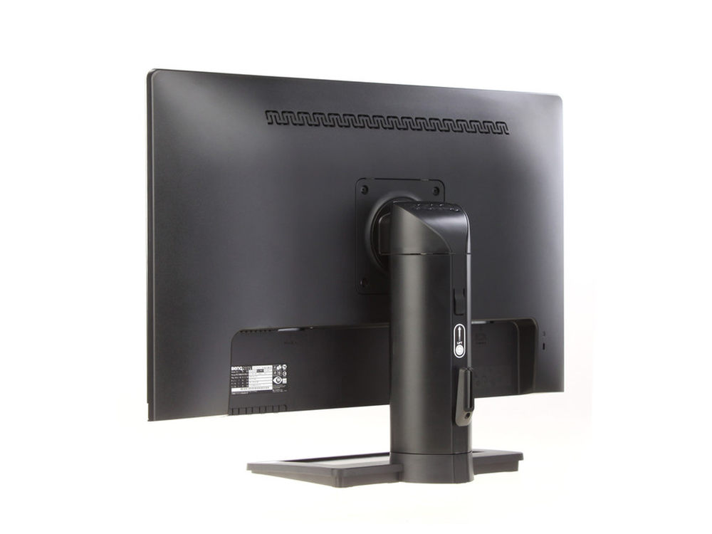 明基BL2400PT的背部有些圆润风格,上方的散热孔很是另类。它的支架也是不同于普通LED液晶的小巧,如此粗壮的支架很有商务型格,其实这是缘于明基BL2400PT的升降和旋转。这款液晶支持水平方向45度的旋转,还有超大的俯仰角度,同时还支持垂直显示。相信也正是因为支持竖直旋转屏幕,才用的这样厚重稳定的支架作为支撑。