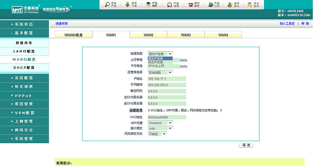 我们可以对四个WAN口分别进行设置,每个WAN口都可以选用不同的宽带类型,并且可以将这些带宽进行叠加。11/15