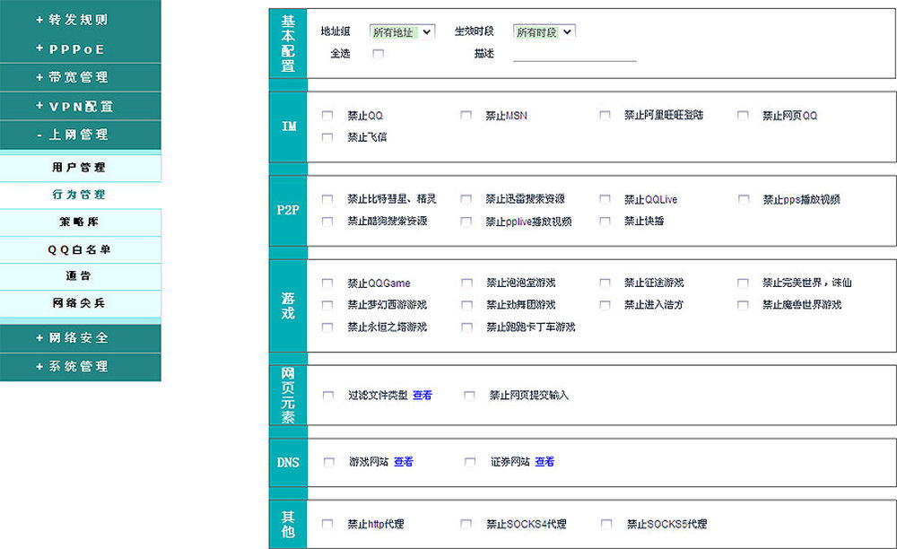 上网行为管理,配合策略库等,可对网内连接设备进行细致的管理。13/15