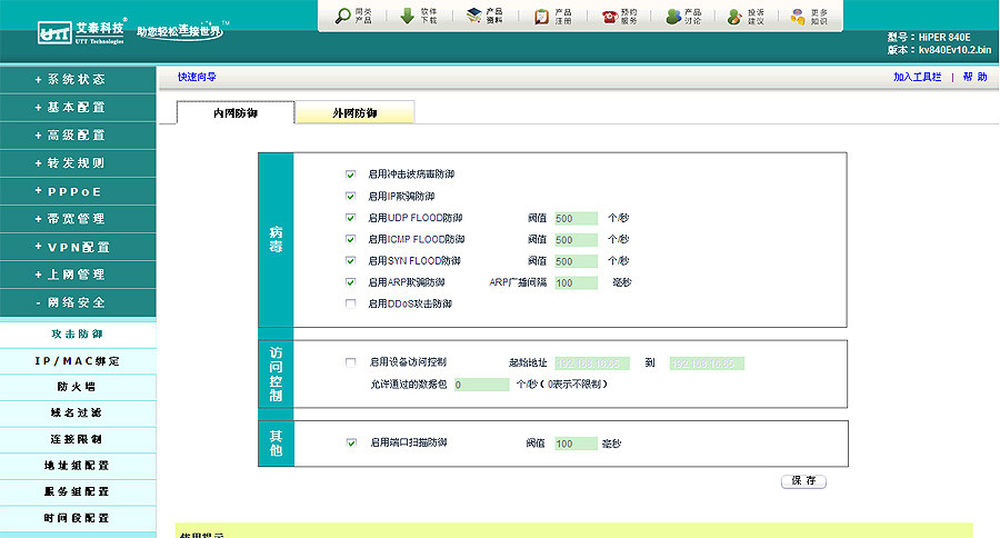 网络尖兵设置,可以轻松解决多用户共享上网的问题。这个功能配合PPPoE,可以轻松实现小范围内宽带出租的业务,相信这款产品在小区宽带介入方面,也会有着非常不错的表现。14/15