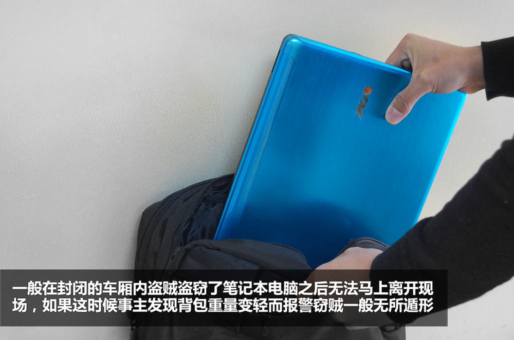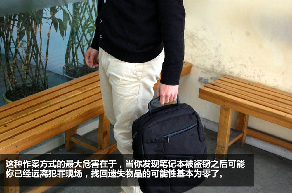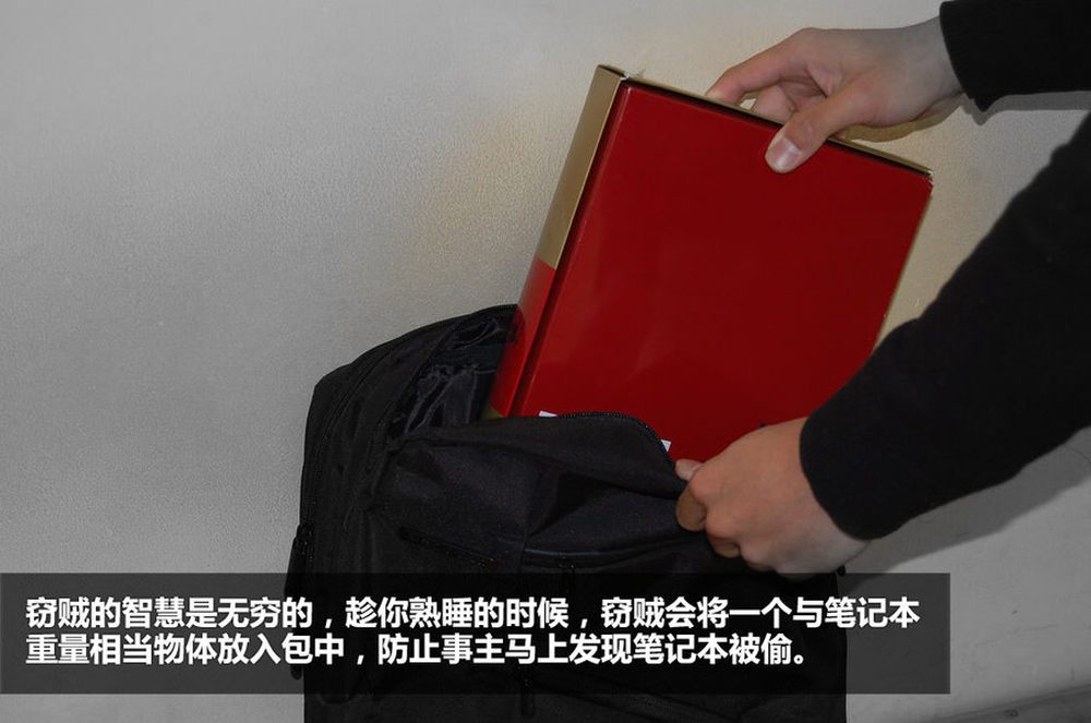 由于条件所限,笔者们无法在火车上实景模拟笔记本偷窃过程,故此在公司休息室内简单的还原了一下笔记本偷窃的全过程。诸位看官还请见谅。19/23