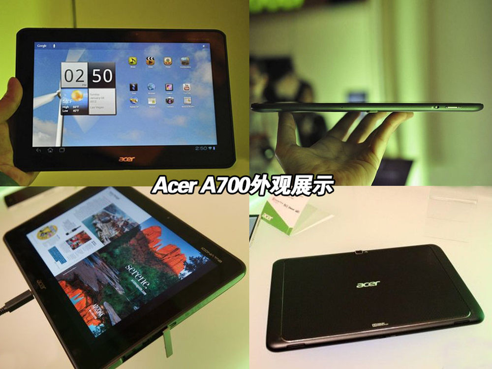Acer Iconia Tab A700采用10.1英寸IPS屏幕,内部搭载Tegra3四核心处理器,机身重量为650g,屏幕支持10点触控。为了提供持久的续航,电池也增容到了9800mAh,可连续播放10小时的影片。8/16