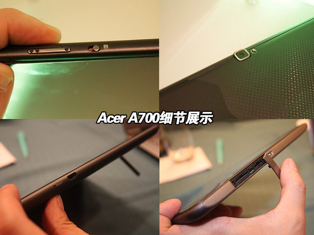 Acer Iconia Tab A700机身周围设有SIM卡、micro SD卡插槽和mini HDMI、 micro USB接口,此外A700还配备了500万像素后置摄像头。9/16