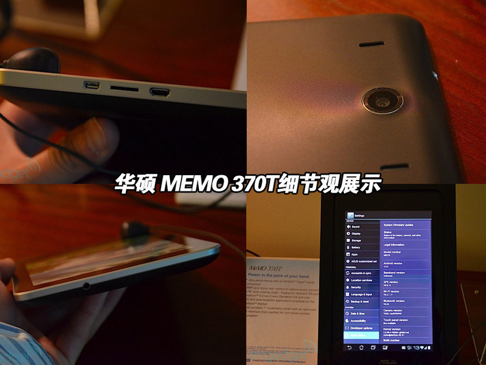 华硕MEMO 370T细节展示。7英寸机身仍然设计感十足,接口方便易操作,机身内置了micro USB接口、3.5mm耳机孔及一个mini HDMI高清输出接口。背部同样配备了800万像素摄像头。NVIDIA的记者会上,宣布了370T预计售价仅249美元!