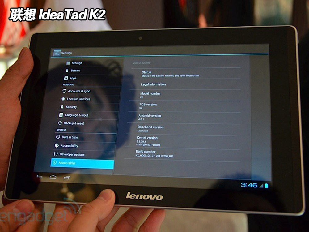 联想K2采用最新的Android4.0智能操作系统,上图为系统信息截图。7/16