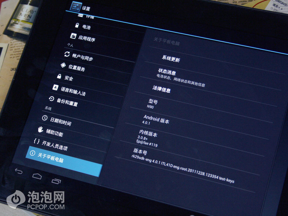 来看一下原道N90系统详细信息,Android4.0版本号是4.0.1