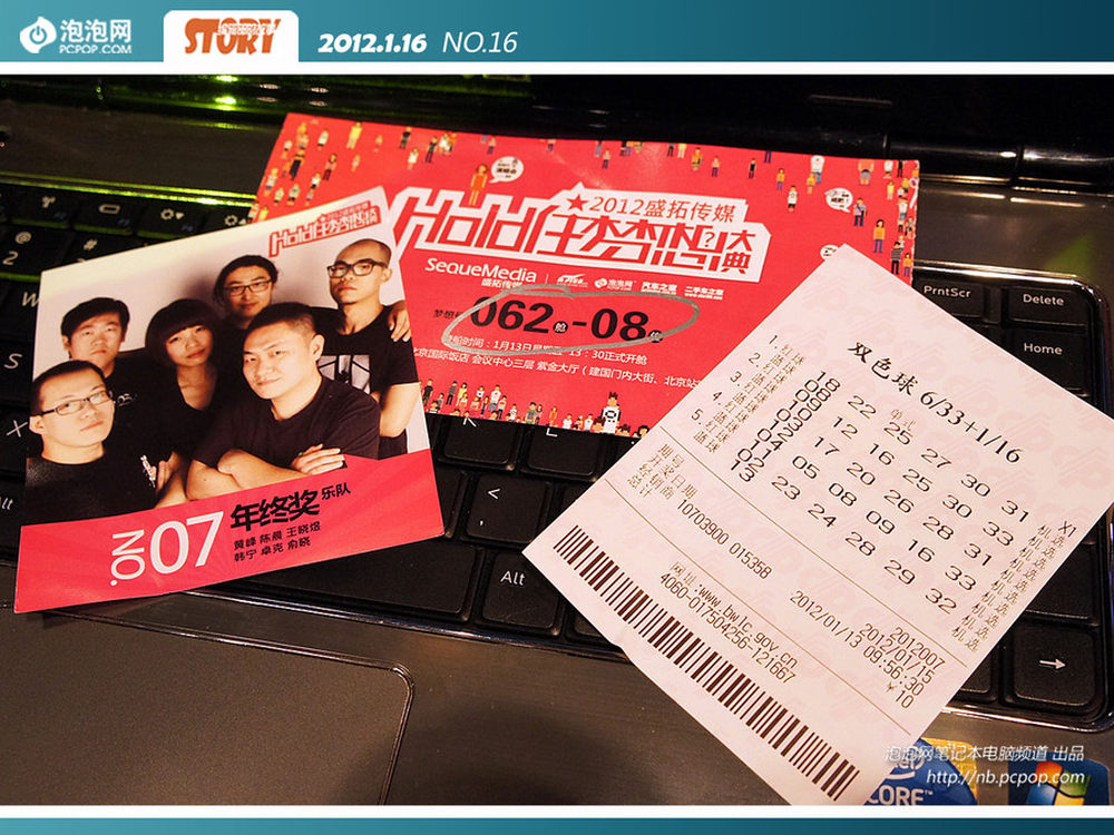 凭年会登船船票可领取一张支持的节目单和一张双色球奖券。作为音乐爱好者必须支持年终奖乐队!5/21