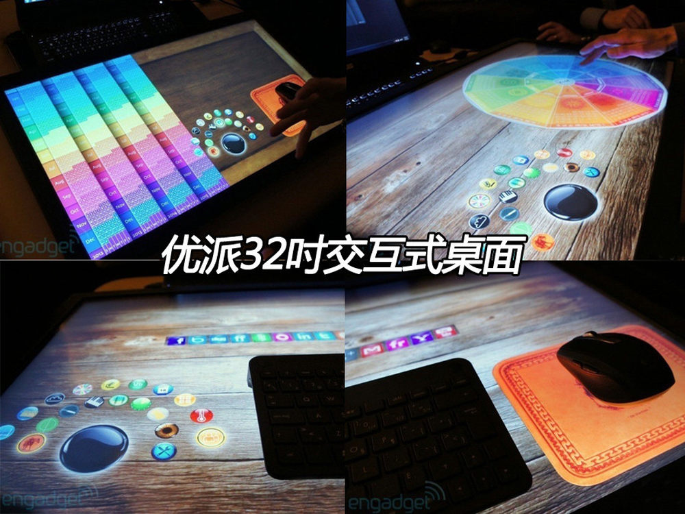 交互式桌面可能也是大家很感兴趣一种前沿产品,上图便是我们看到的优派展出的32英寸交互式桌面。这款交互式桌面采用HTML5来编写应用,搭配一个载有英特尔酷睿i7处理器的外接PC,运行Windows 7操作系统,这样我们在PC上的操作将会更加多样化,传统单一的鼠标键盘也很有可能会被弃之一旁。12/12