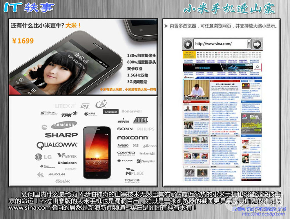 不得不感叹在神奇的国度任何事情都可能发生。前不久连小米手机也惨遭山寨,而且名字上还占尽便宜,让人大跌眼镜。不知雷军看到以后是何感想。15/22