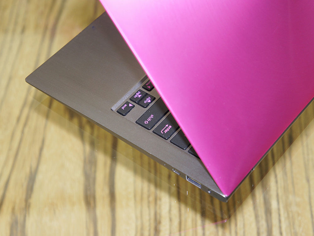 蔷薇粉色的顶盖非常讨女孩子喜欢,想必华硕选择这个颜色也是经过了充分的市场调研的。3/21