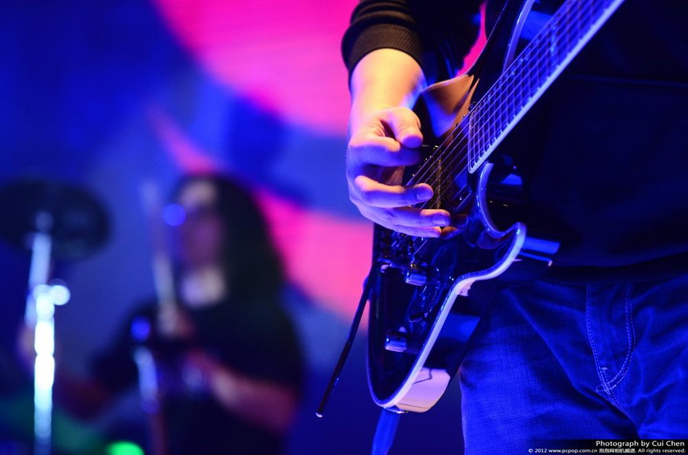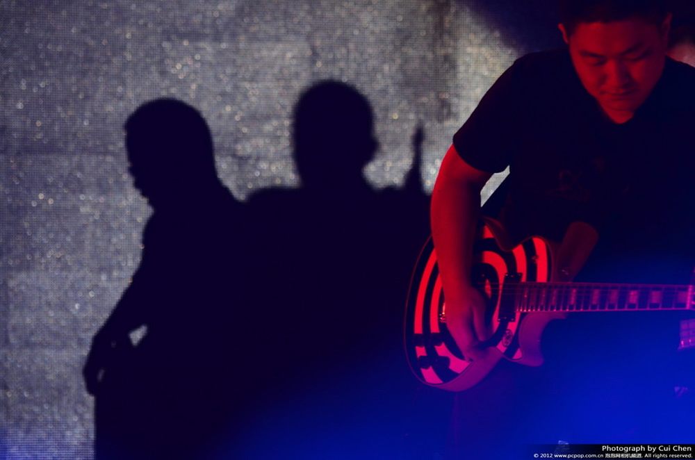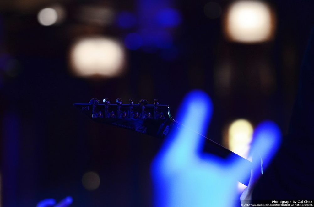 表演者全身投入到演出当中的神态,也是抓拍的重点之一,键盘手的这种状态也是只有现场达到最High点才会爆发出来的。
