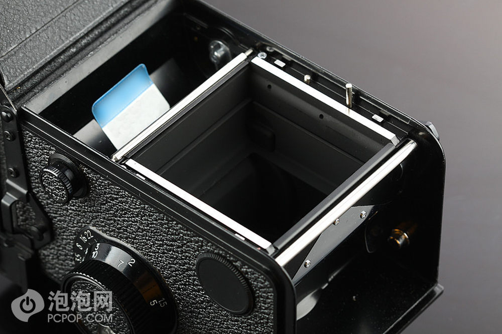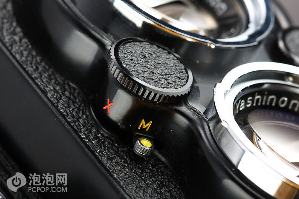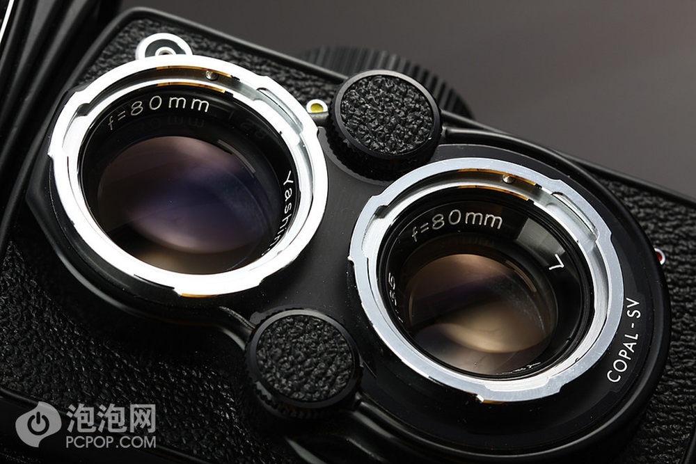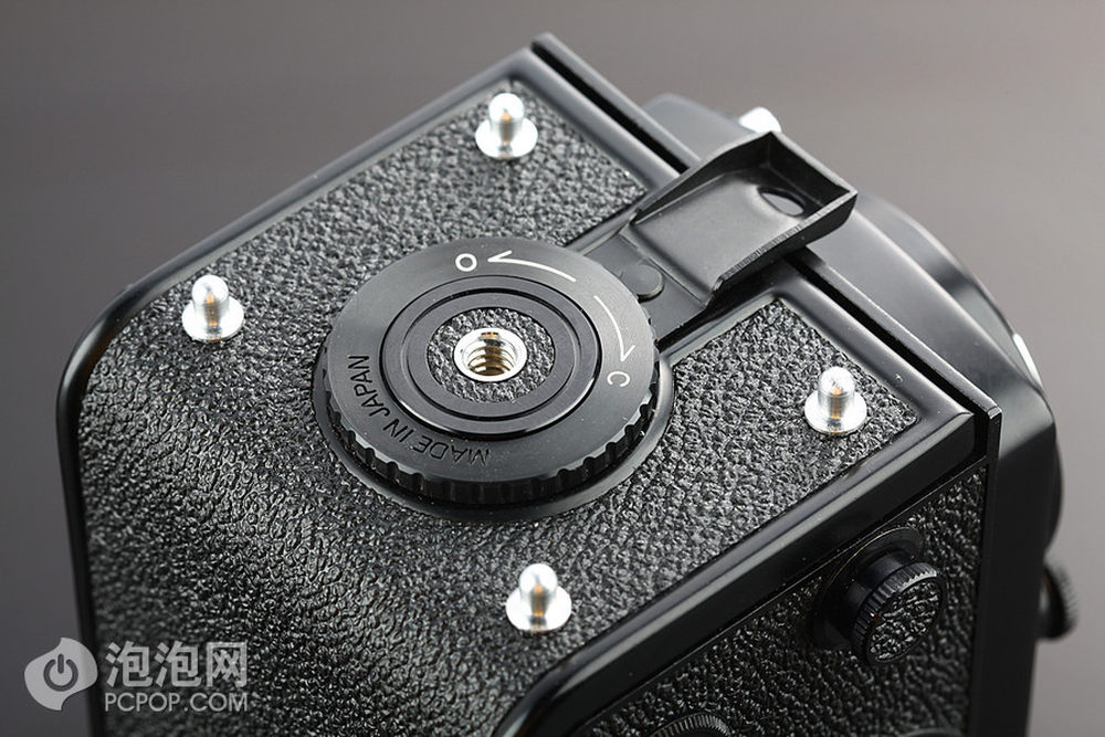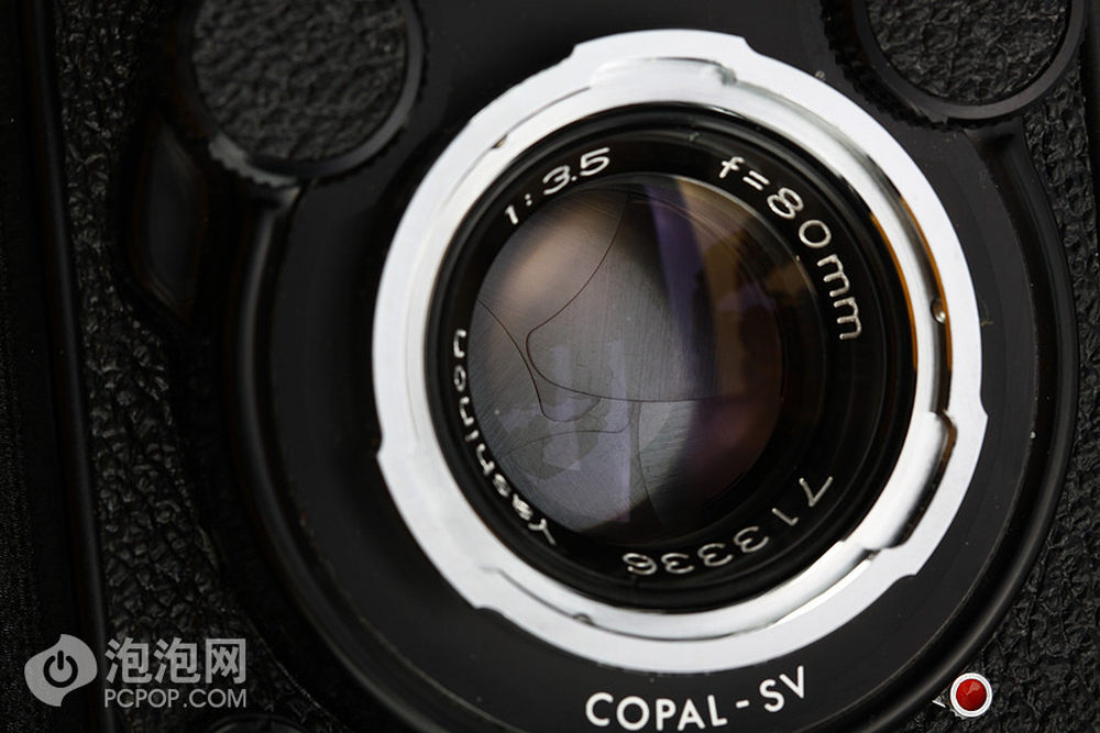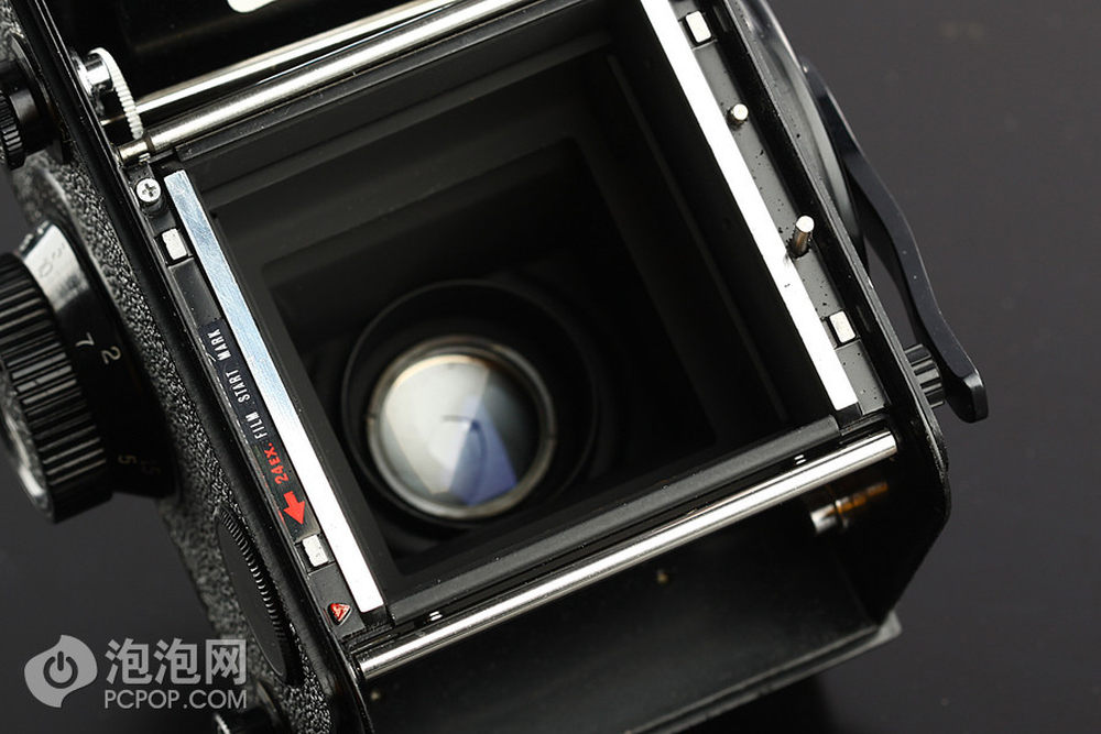 作为双反120相机,自然在机身上我们就可以看到2支镜头,上面的为取景镜头,下面的为拍摄镜头。8/31
