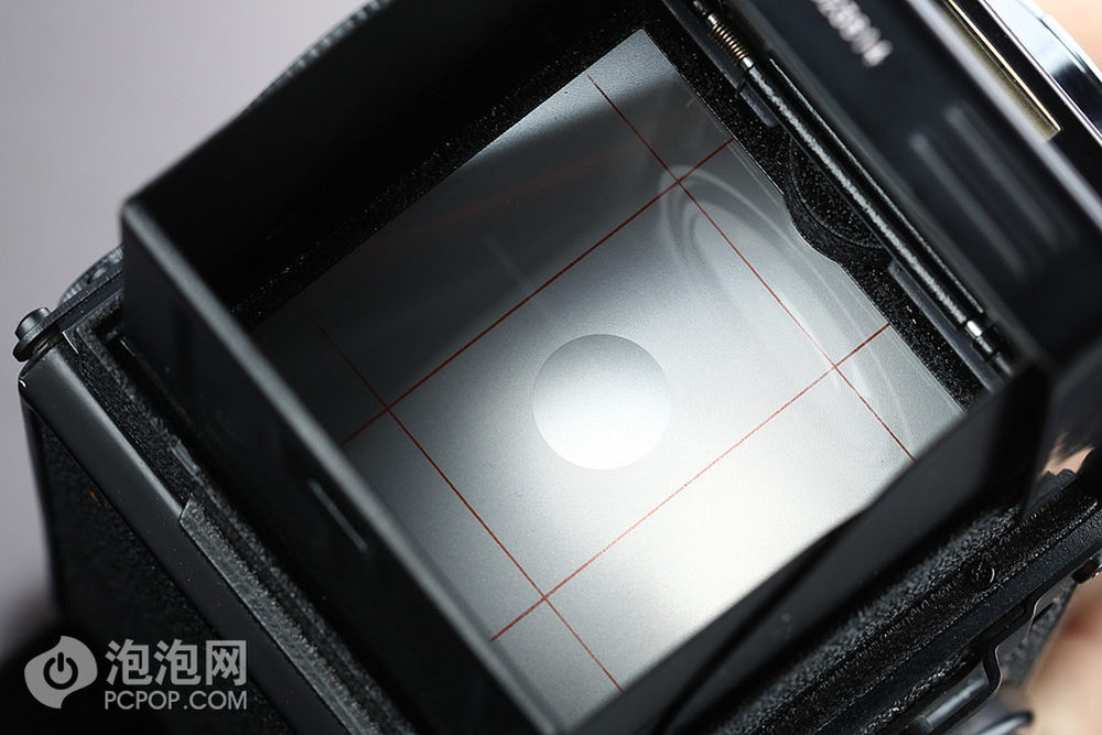 雅西卡124G的取景窗上还设计了一个放大镜,用于精确对焦使用,这对于毛玻璃对焦来说是一大便利。21/31