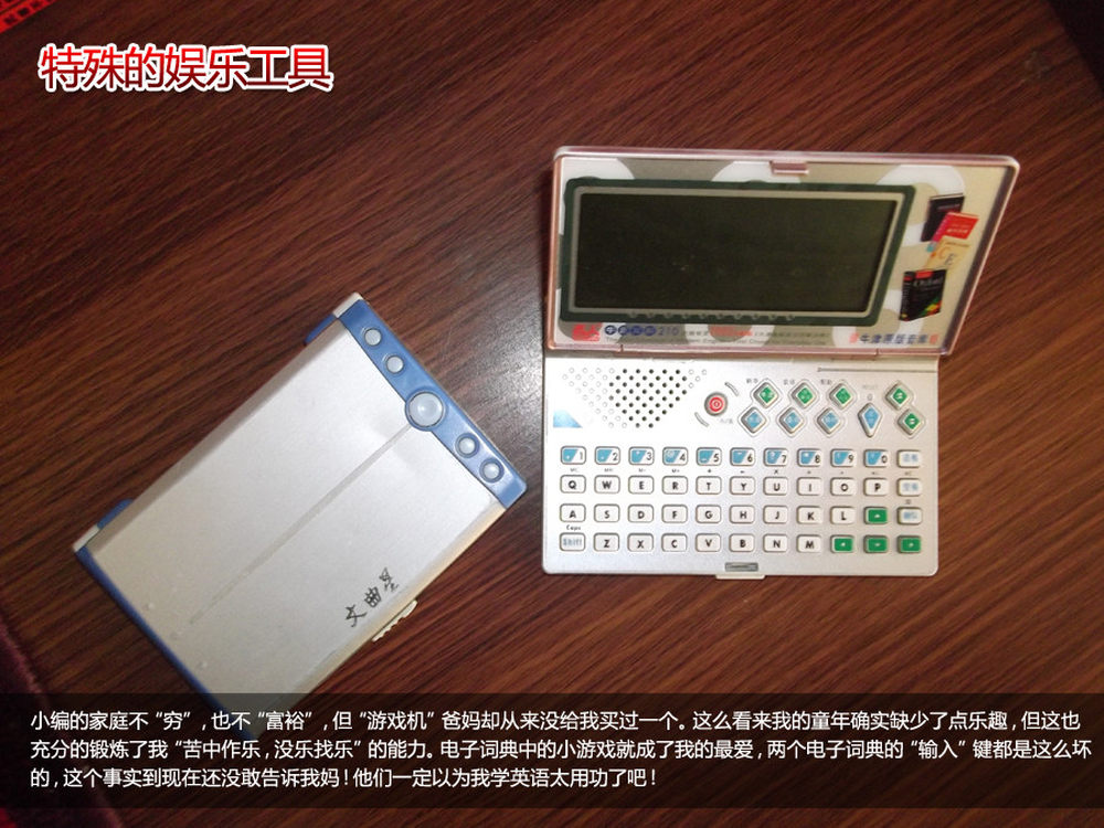 学习机、电子词典、复读机大部分借学习之名,被用以娱乐!不过还是要感谢我的爸妈,让我有更多的时间学习知识和干一些自己喜欢的事情。12/16