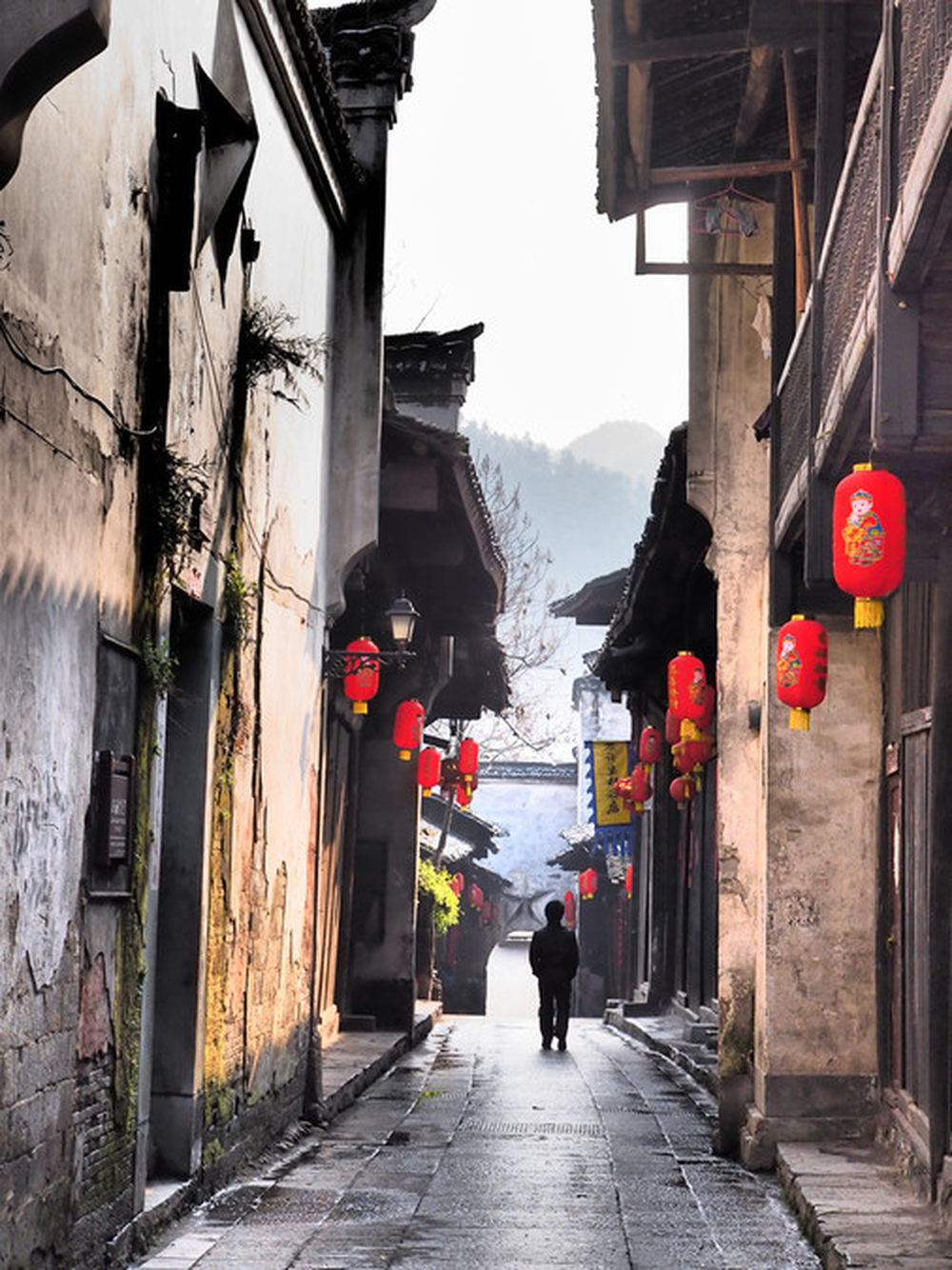 朦脓的远山映衬着古镇,更有一份隐秘的意境。15/46