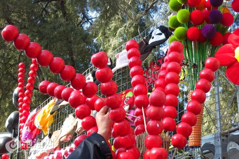 仿真的冰糖葫芦看着很喜气,很多路人都会忍不住买上一串。10/30