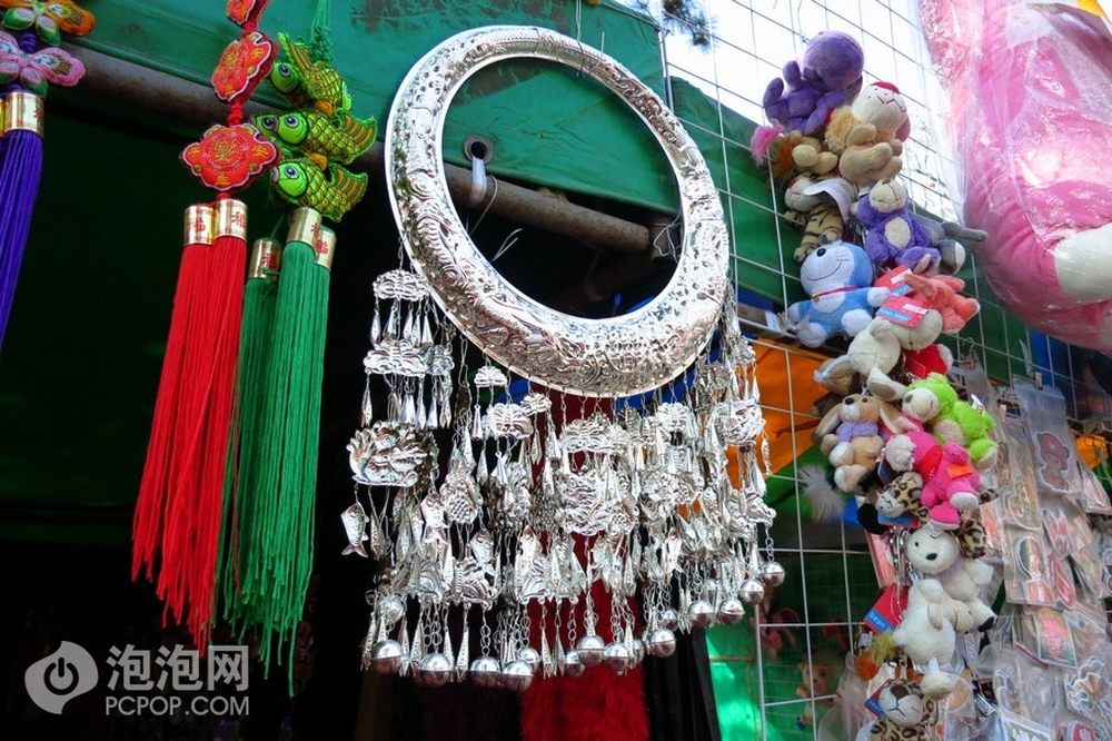 这应该是苗族姑娘的配饰吧!看起来蛮沉的,听说都是银饰,想来这里的都是纺织品吧!不过拿在手里分量确实不轻啊!14/30