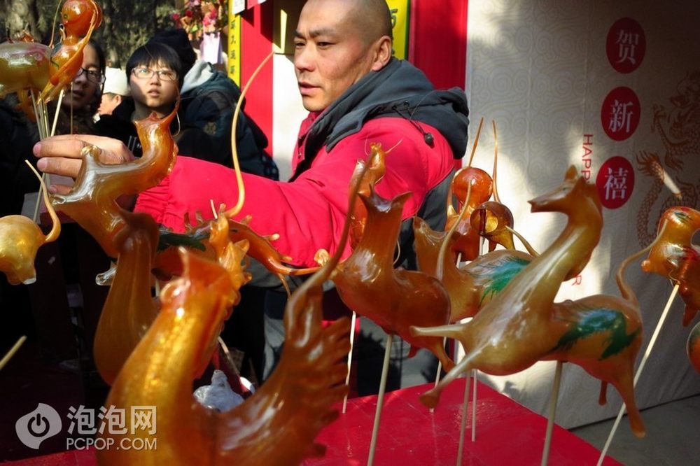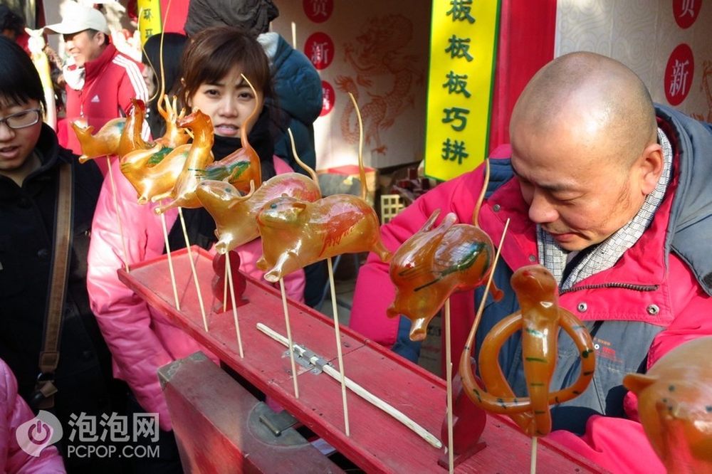 吹糖人,小时候最喜欢的。庙会这里的“吹糖人”可是引得海量的路人围观,费了半天劲终于挤到跟前咯!24/30