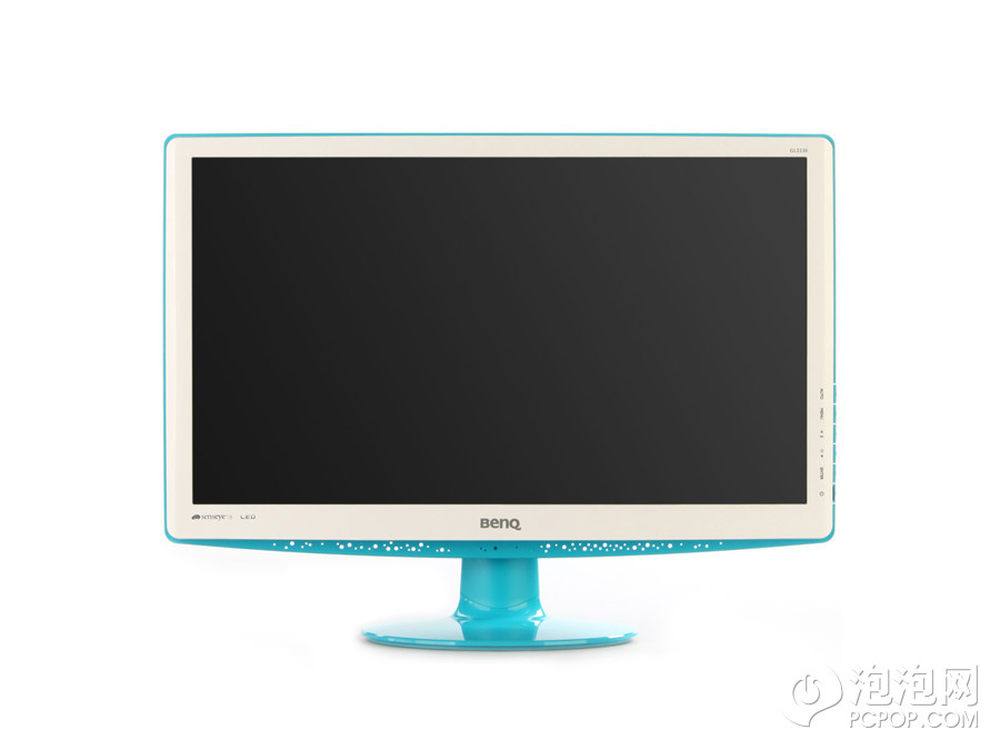 从明基GL2230M的正面机身上看去,它的底座、支架和下边框也都淡蓝色包裹。尤其是下边框还有许多打孔设计,看起来很是童趣。3/15