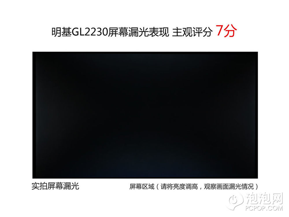明基GL2230M的漏光控制不俗,通体来看没有明显的漏光现象溢出。13/15