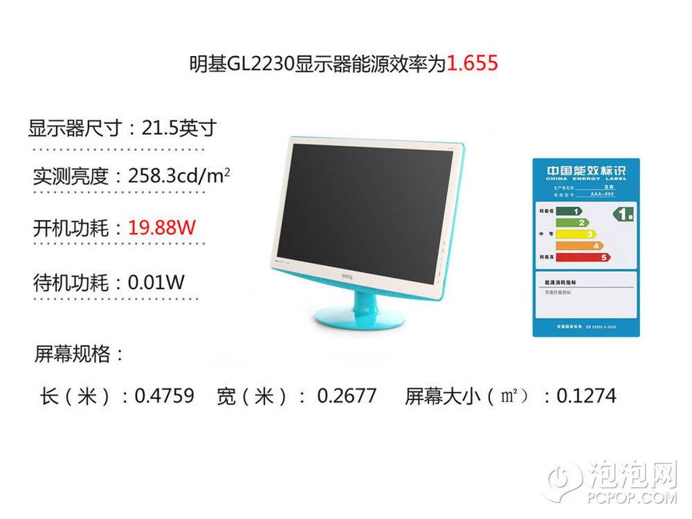 明基GL2230M达到了国家1级节能标准,省电非常,满载开机功耗不到20瓦。14/15