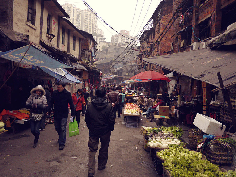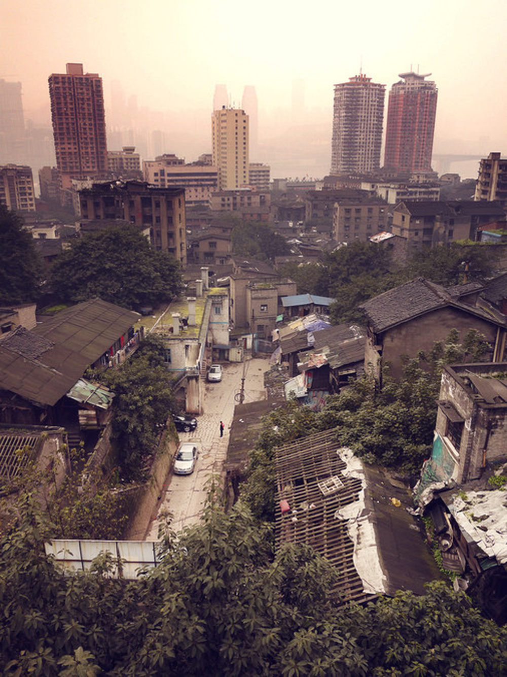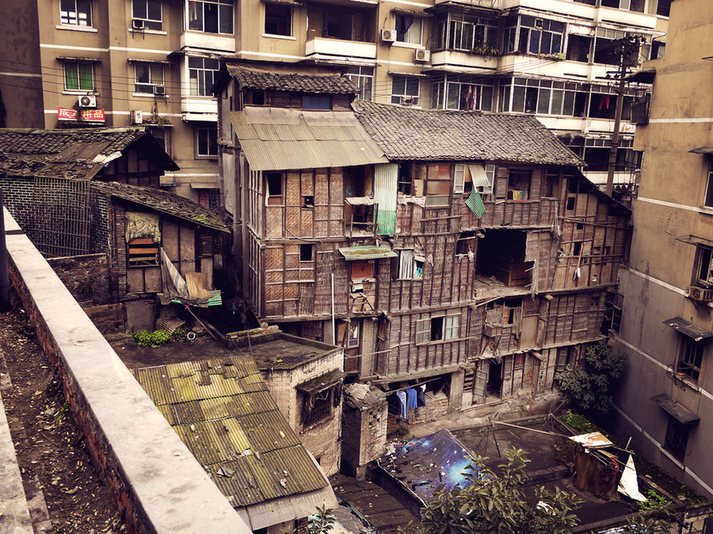 从十八梯最上面往下看,拆迁中的房屋已经很破旧了