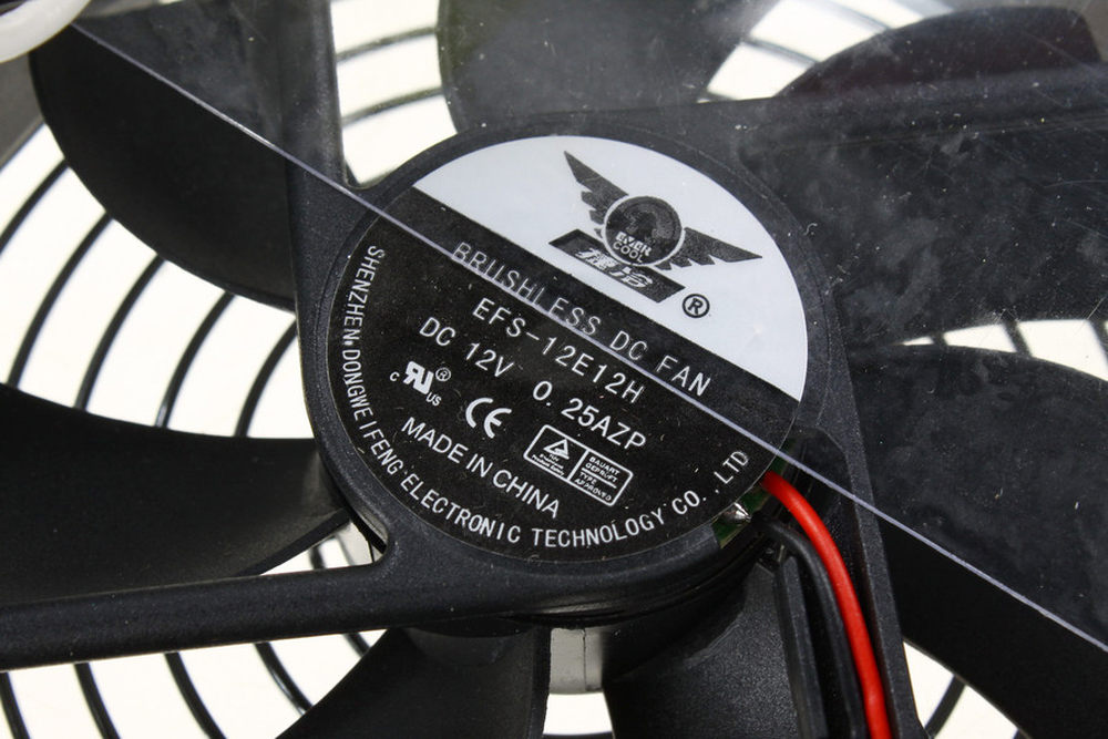 风扇来自捷冷,采用的是油封轴承,直流电压是12V,电流是0.25A,油封轴承通常比较安静。