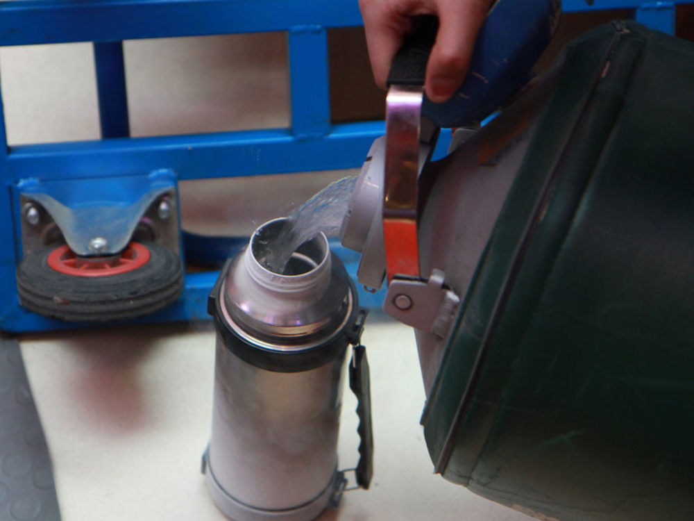 图为选手在倾倒液氮。13/14
