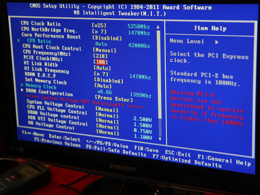 在比赛现场,选手们不断的调节BIOS参数来实现更高主频,图为某选手的BIOS界面,想学习超频推土机处理器的网友可以参考下,不过前提是液氮散热哦!14/14