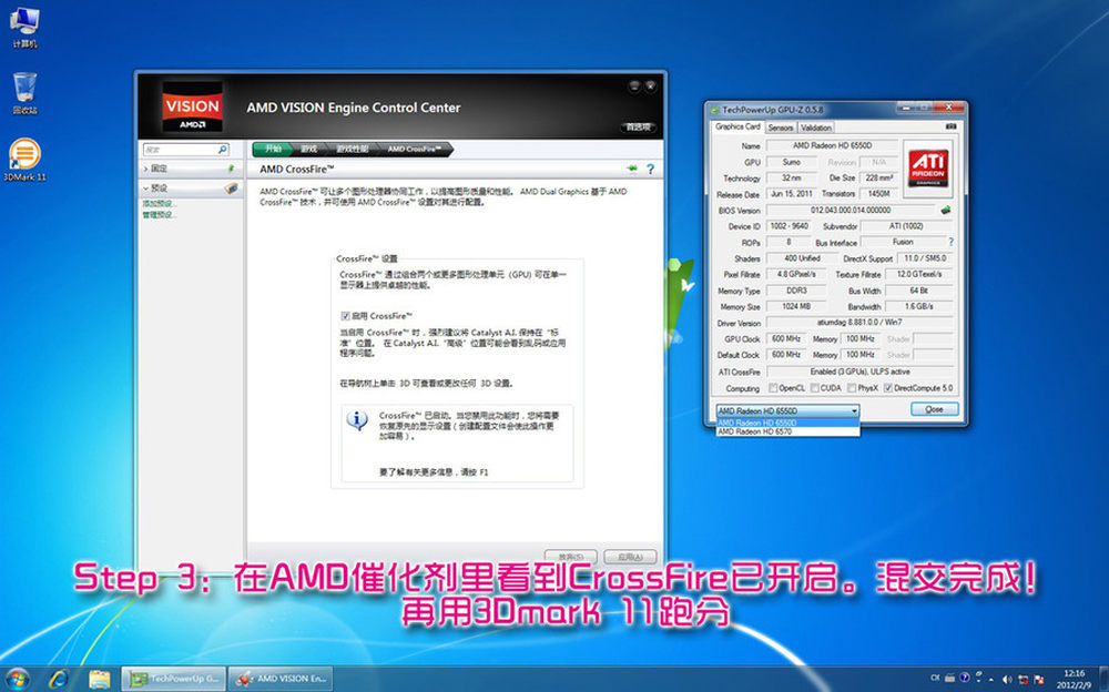 在催化剂显示控制中心中开启交火选项。到此APU双卡已经设置完毕。18/19