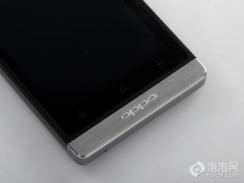 底部OPPO的标志非常醒目,在金属条上方是手机的功能按键,按键在不使用的时候与屏幕几乎浑然一体,在点亮之后会发出淡淡的光。27/29