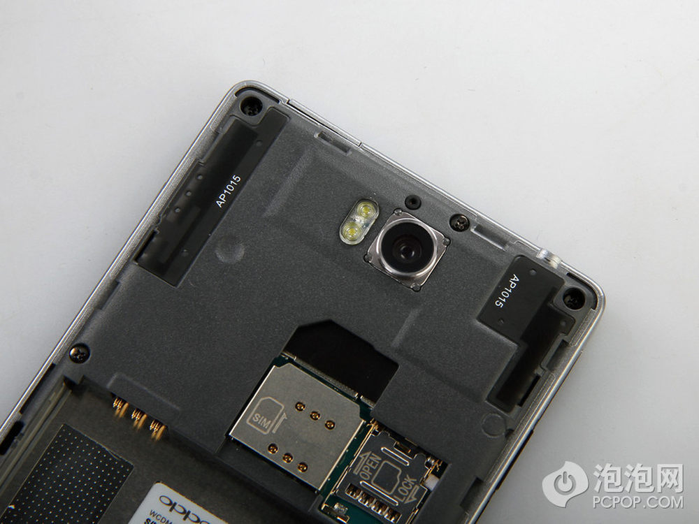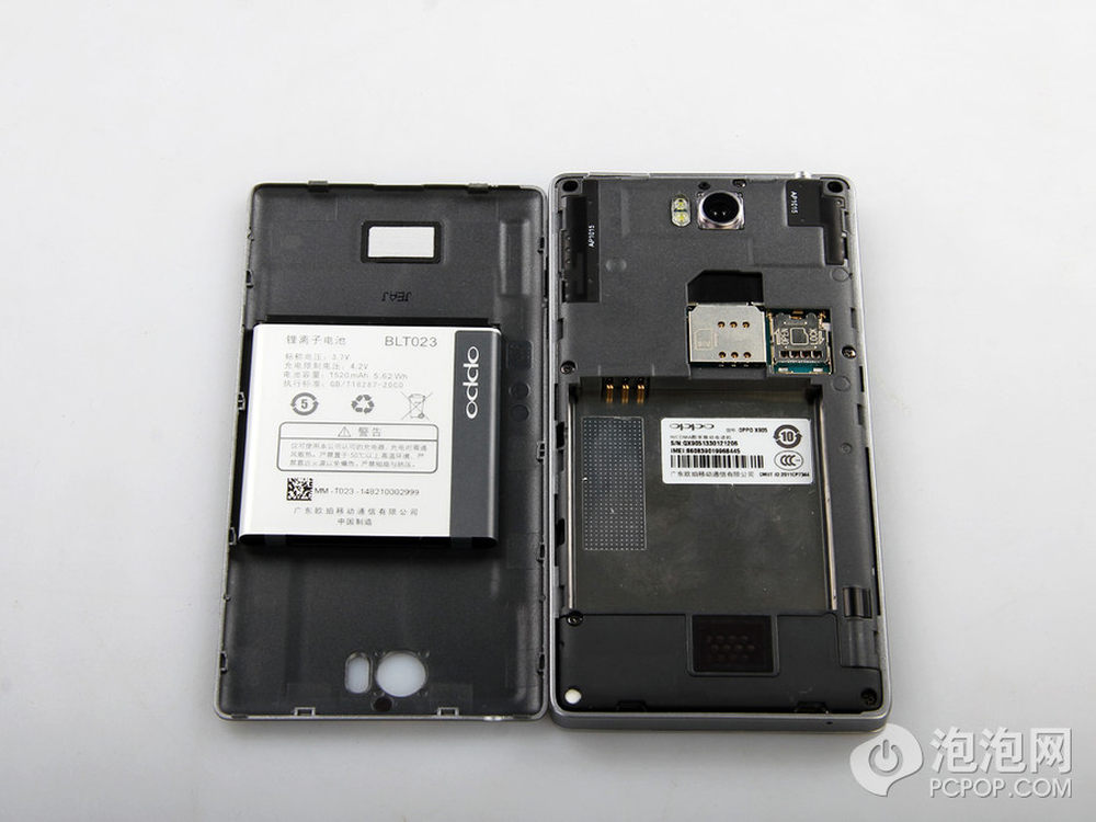从手机背部下方可以扣开手机的电池盖,打开后盖之后可以看到手机电池仓的构造,从做工上来说Find 3还是非常精细的。20/29