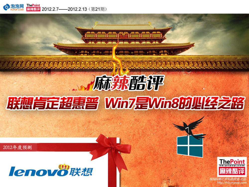 回顾上周PC业界唇枪舌战,iTunes涨价销售惠特尼-休斯顿专辑遭粉丝责难。同时,微软近日言论着实泼了想越过Windows 7的企业级用户一盆凉水,苦口婆心撂下一句“想用Win8先装Win7”的劝谏。对于PC市场的预期,微软方面则预计这次天灾将持续到2012年春季,愿世界和平。此外,对PC市场信任老大的预计再添呼声,联想PC被予以厚望,分析师更是给出了“继续增长将会超越惠普”的论断。那也难怪,目前联想PC全球市场份额已增至14%%,去年同期才有3.7%%而已。好了,接下来就让我们具体了解一下上周的麻辣酷评吧!2/8