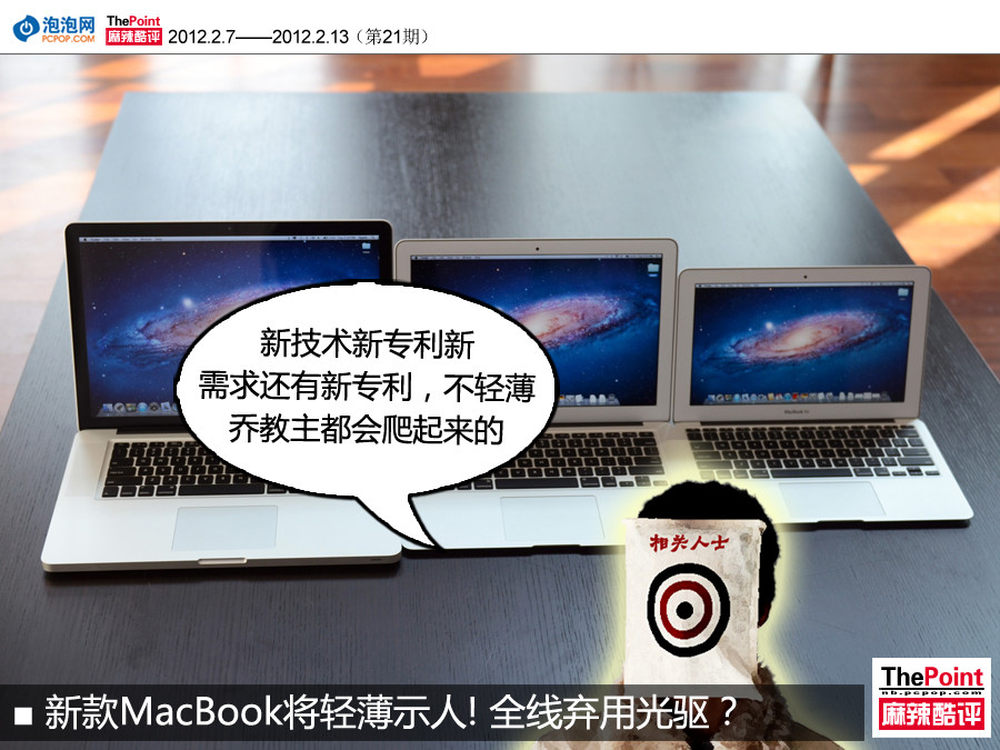 据国外媒体报道,近日有消息透露苹果2012款MacBook Pro产品线将做大幅调整,全新轻薄外形将应用在MBP新品种,并正式全线取消光驱设置。据业内人士分析,新款MBP最早或4月底发布。截止至发稿时间,新款MacBook Pro的配置如何还不曾得知,但从其定位来看,Ivy Bridge最新处理器、分辨率达2880?1800的显示器、Thunderbolt接口以及混合硬盘(或SSD)极有可能出现其中。至于显卡方面,AMD以及NVIDIA最新产品则颇具争议。此外在系统方面,从苹果Mac OS系统的更新周期来看,Lion将继续装载,但也有望内置Siri语音服务。(更详细猜测尽在:http://www.pcpop.com/doc/0/761/761002.shtml)8/8