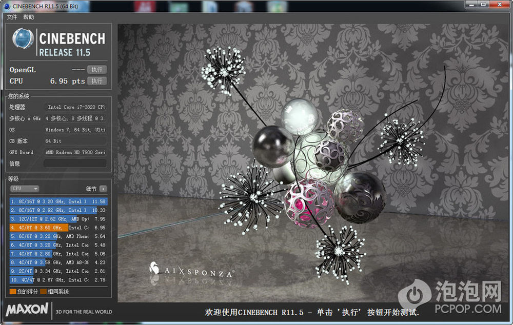 超频前处理器默认3.6GHz,通过睿频技术可以有小幅度提升,超频前的测试成绩为6.95。28/28