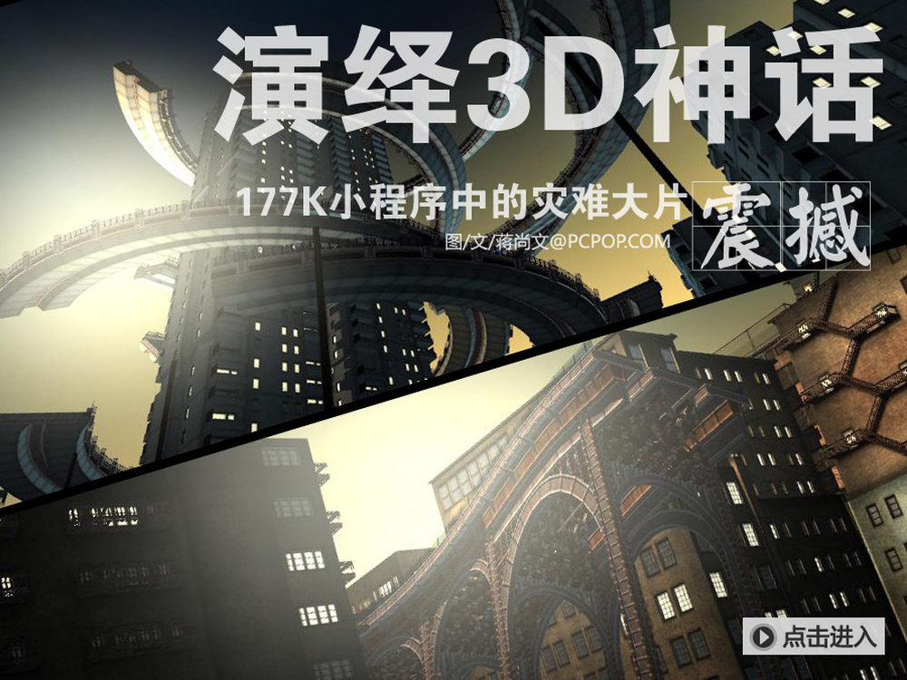 只是一个小程序而已,看完震撼的3D场面,最后值得一提的是,该程序的背景音乐也非常不错,最然程序小的可怜,但场面大的出奇,天马行空的创意给笔者的造成了强烈的视觉震撼!细节部分的纹理贴图、阴影以及HDR、物理效果都很出色!