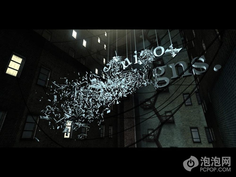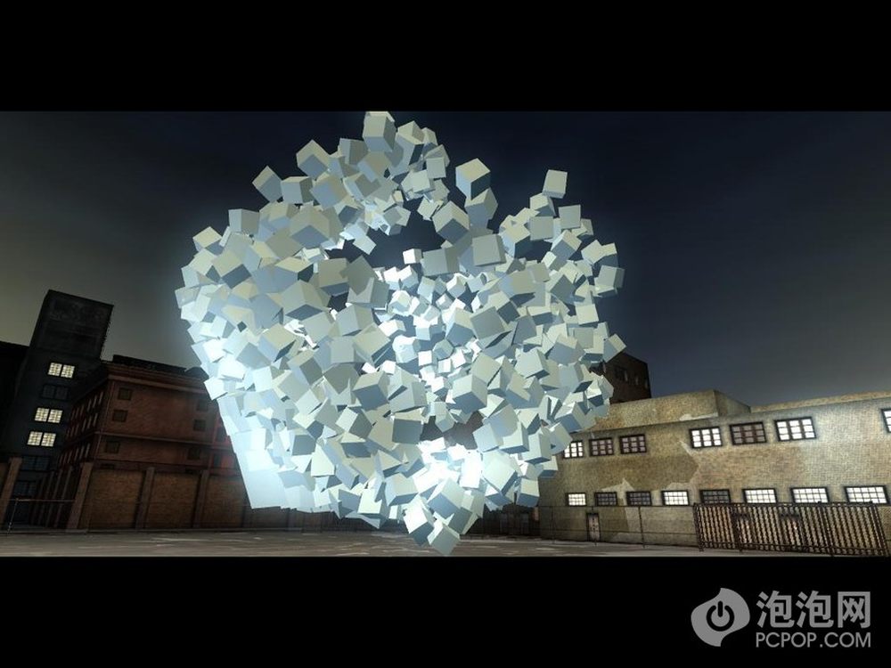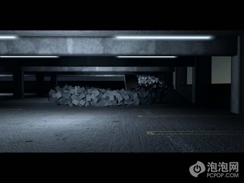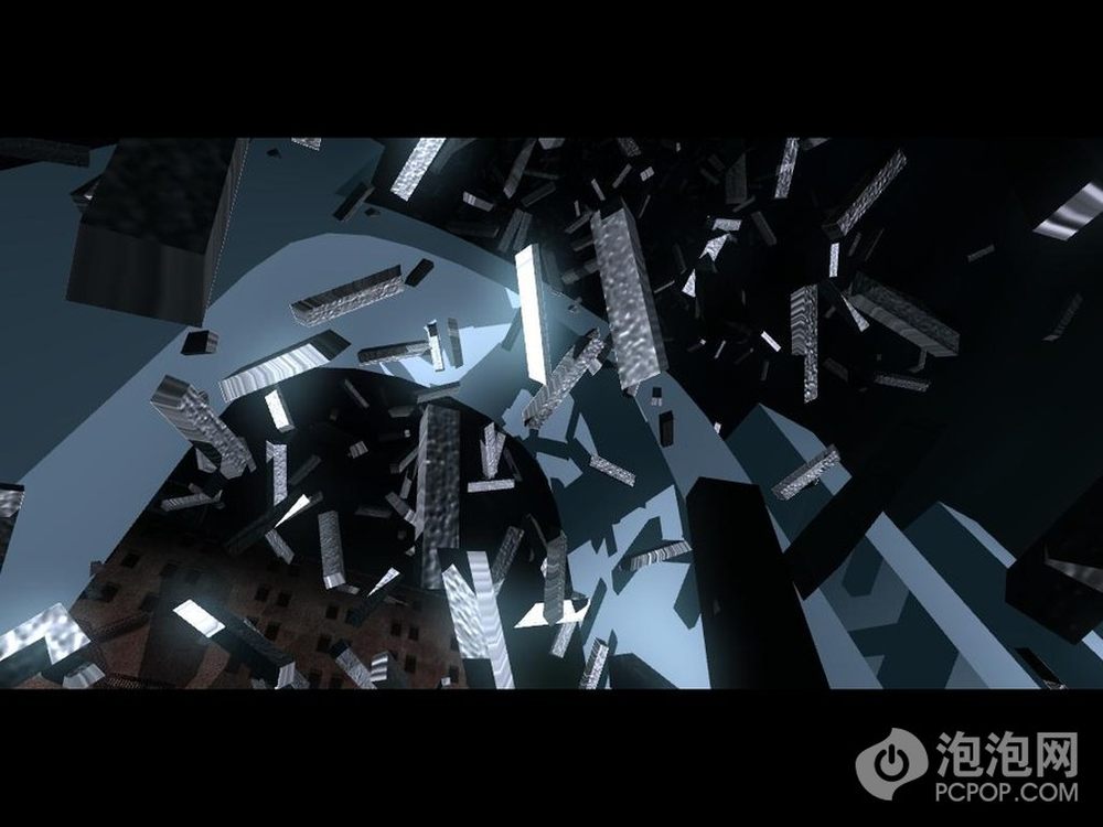 破碎后的立方体向流体一样在运动,突出逼真的物理效果和HDR两大特效。