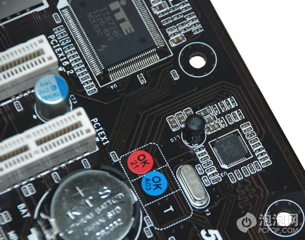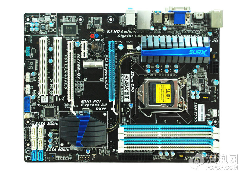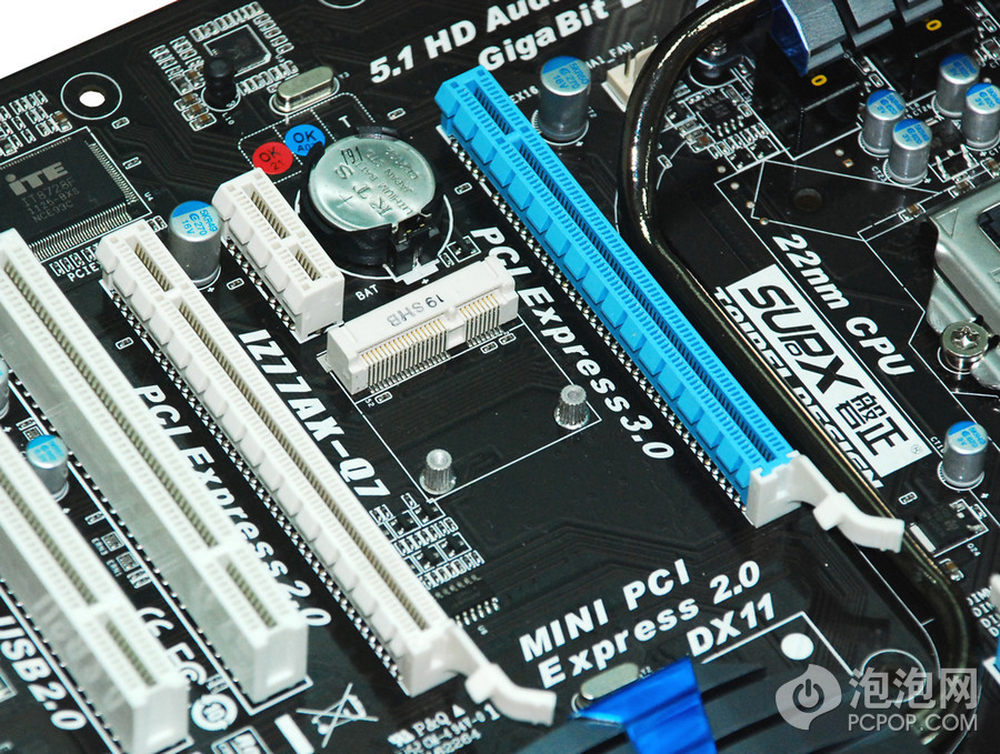 PCIE插槽和其他扩展口,出人意料的是主板还提供一个Mini PCIE插槽。9/12