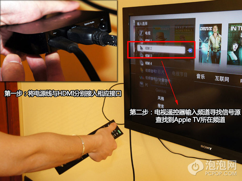 首先进入安装阶段,我们需要一根HDMI转接线,该数据线可供Apple TV输出720P、1080P等高清影像,将该数据线接入对应接口,并接通Apple TV电源,接下来就只需要通过随机附赠的遥控器操作即可。6/16