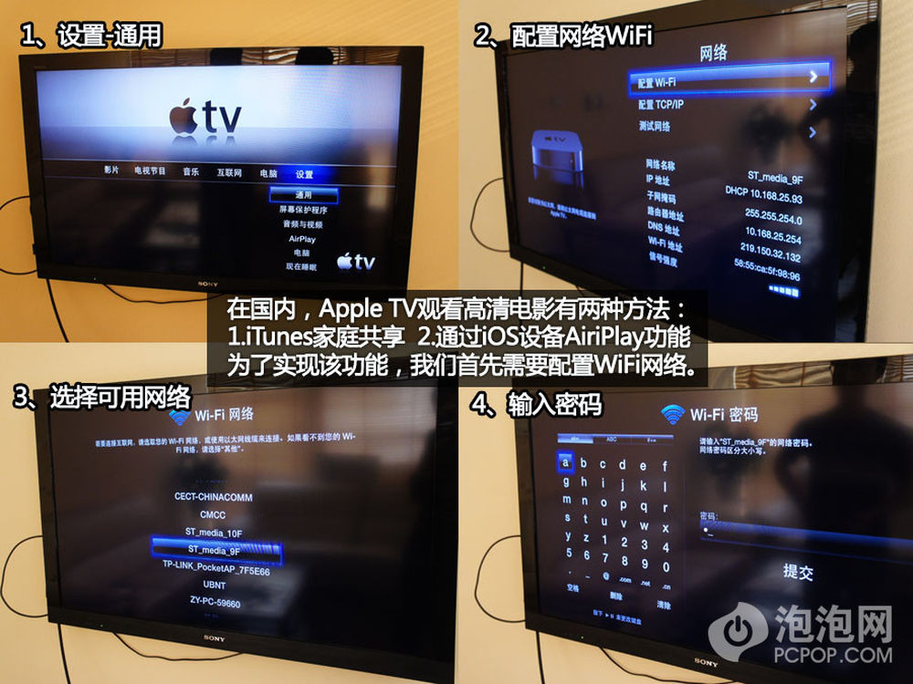 Apple TV最实用的功能就是进行高清电影的播放,通过无线局域网进行数据传输,所以接下来我们进入WiFi设置流程,只需要根据上面的步骤操作即可。13/16