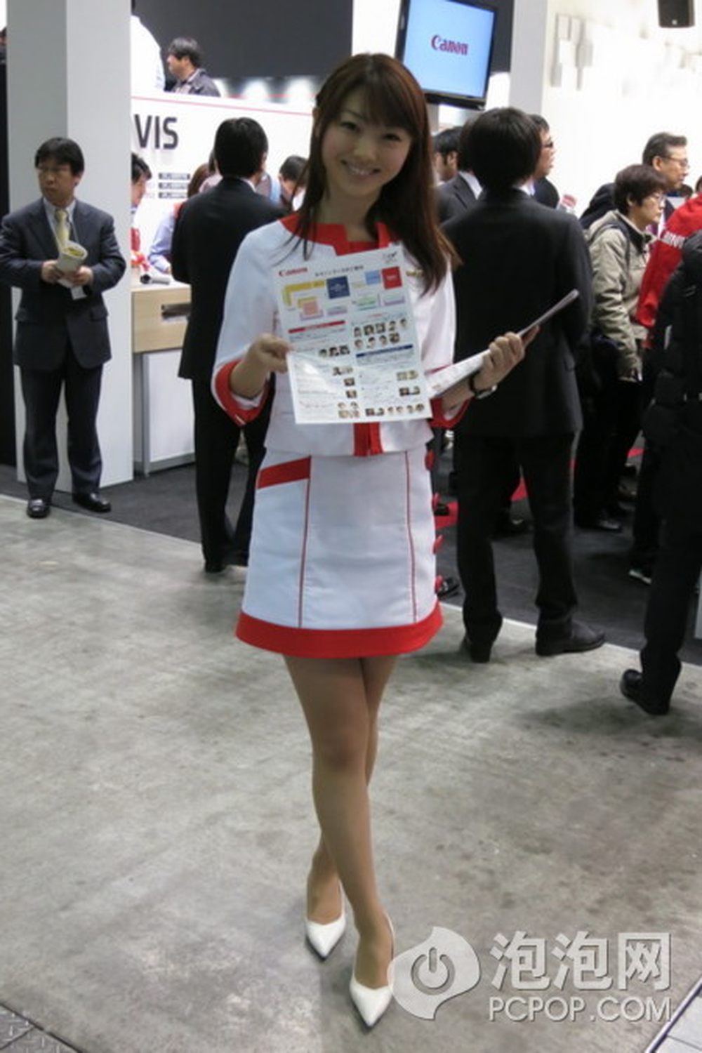 佳能展台甜美的解说员,带人热情,也很大方,你只要一举相机,不用说什么她就直接进入“拍摄模式”了8/86