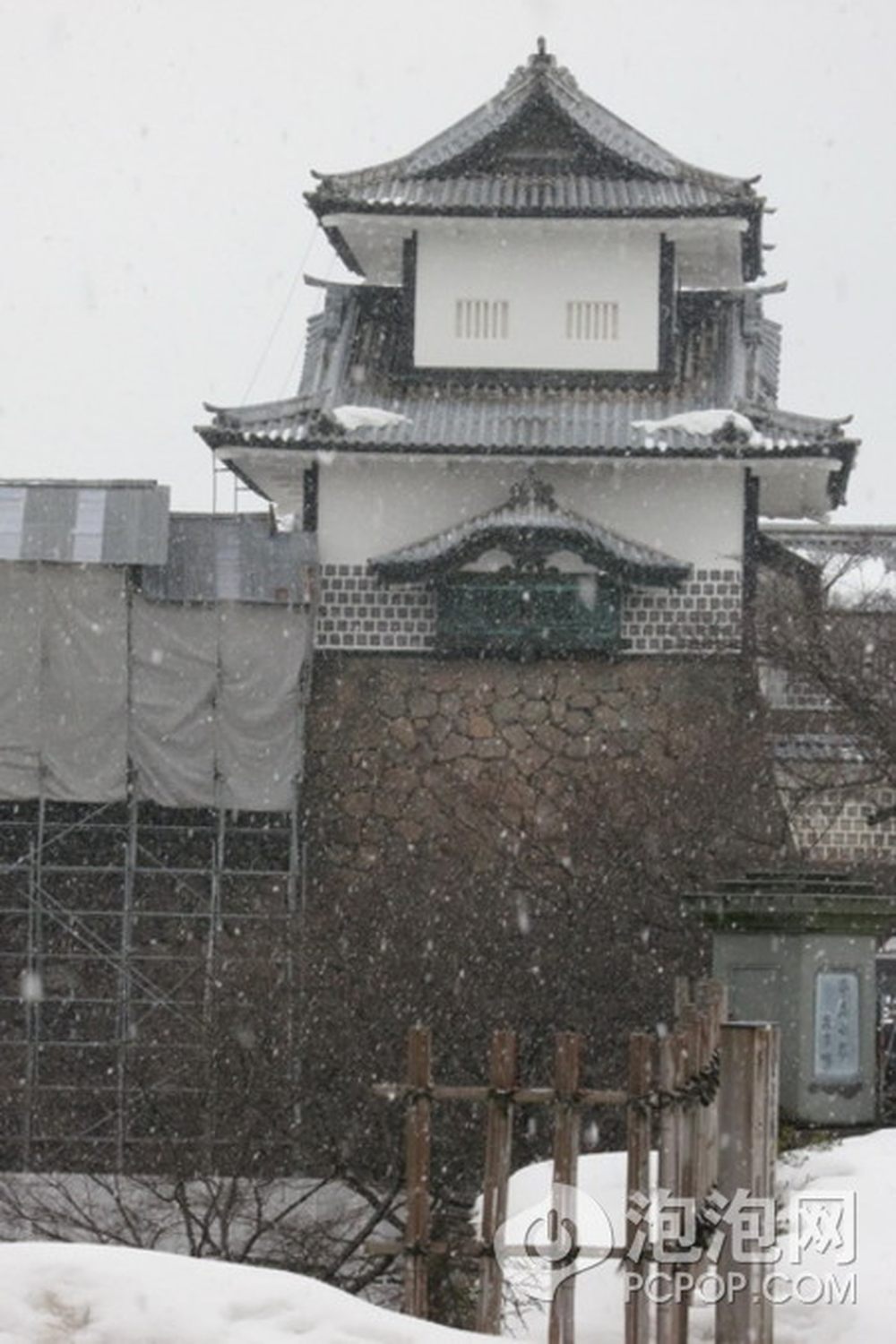 昨天我们拍摄了金泽城的夜景,那么白天它是什么样子的呢,尤其是在风雪中