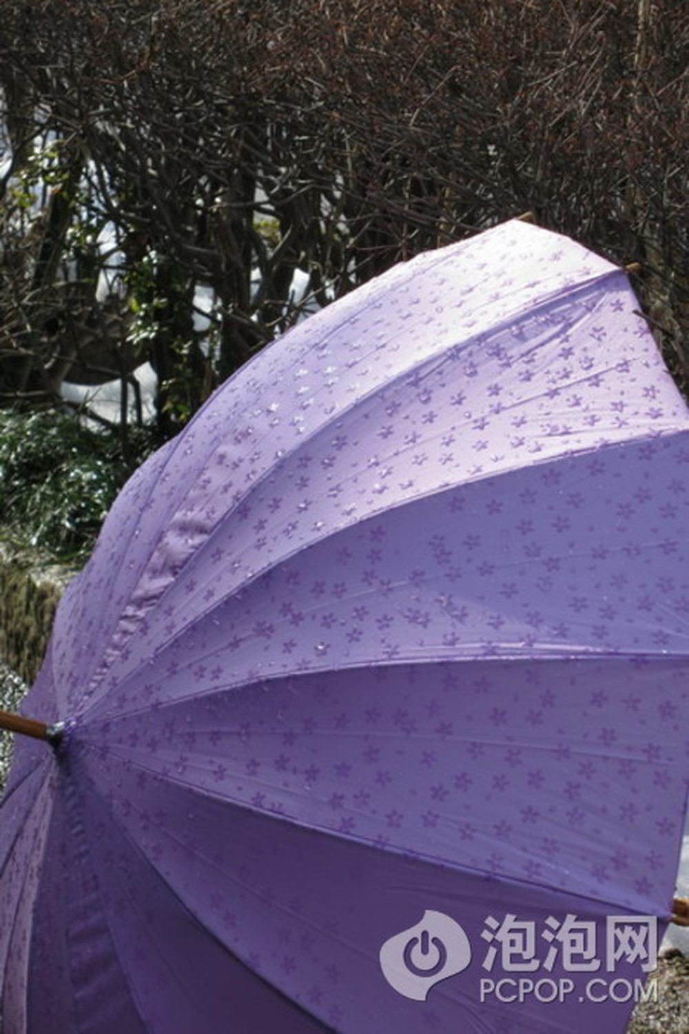 雨伞上面得小樱花大家都看到了吧,它可是实打实的由水珠形成的。原来这把伞在干燥时没有任何花色,在雨雪天时会在这些部位把水锁住形成图案。非常有创意,要不是考虑携带不便,真想买一把回来72/86