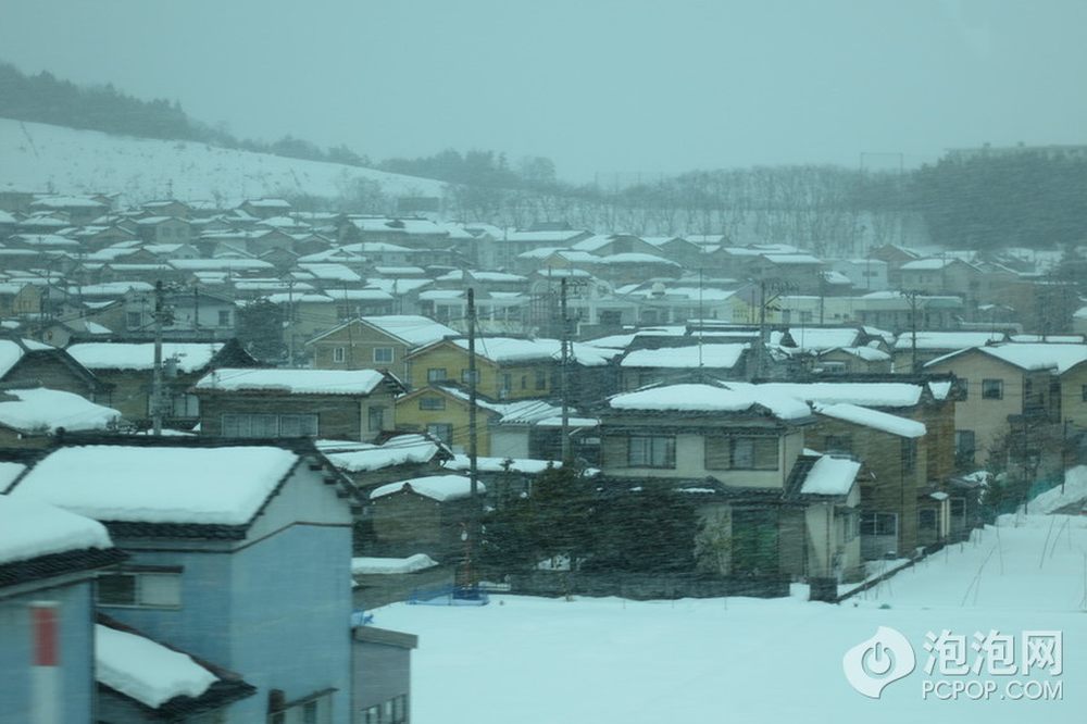 换个角度欣赏金泽的雪景,所有房子上面都有厚厚的一层积雪,但马路上确实非常干净的32/86